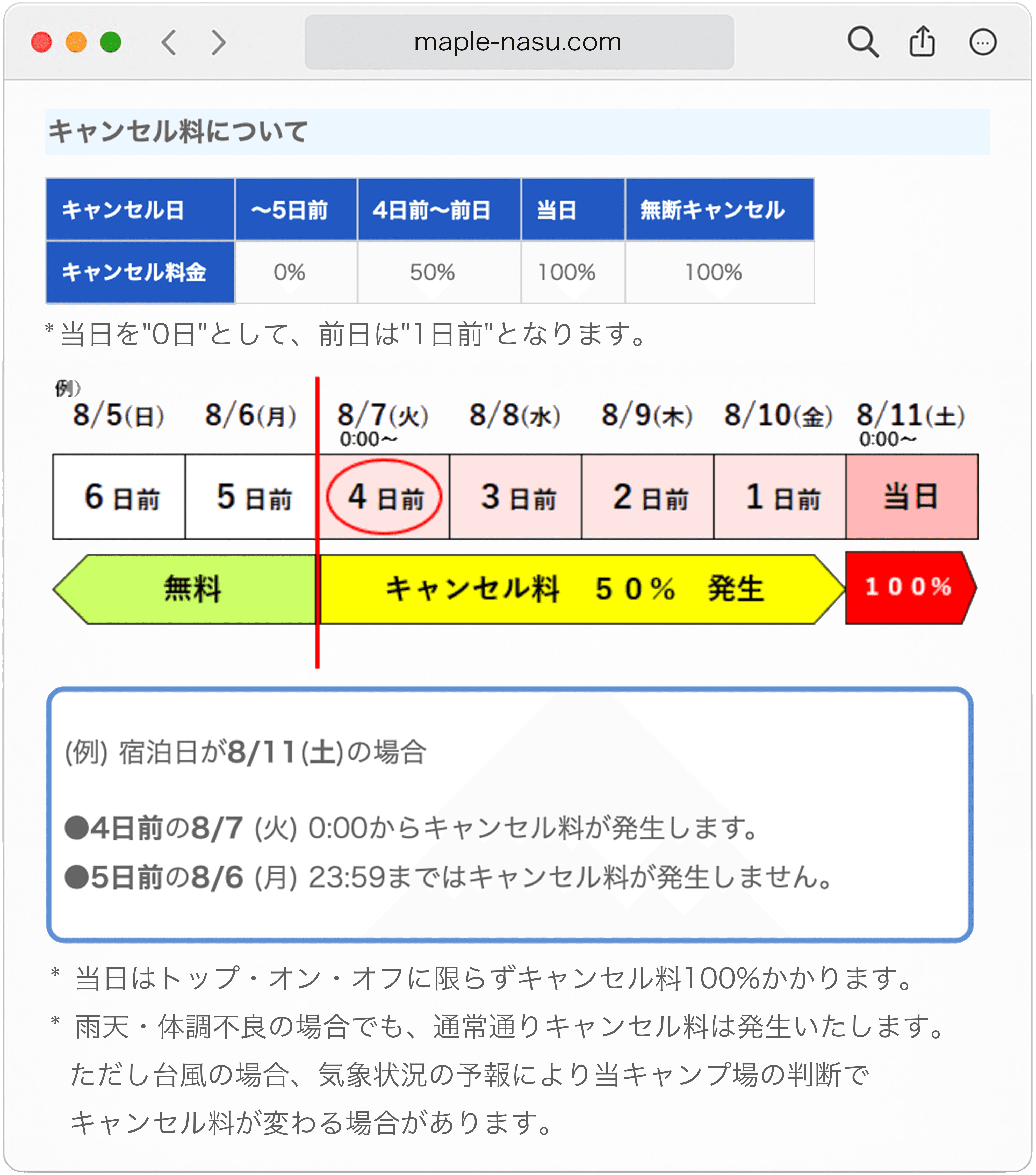 秋田:以前はキャンセルやノーショーがあった場合、電話であればその場でキャンセル料の説明をしていましたが、納得してもらえないケースが多く、対応には非常に苦労していました。たとえば、雨が理由でのキャンセルに対して「雨では楽しめないでしょう」とキャンセル料の支払いを拒否され泣き寝入りしたこともあります。本来、自然を楽しむのがキャンプなのですが。